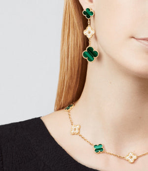 18K Magic Alhambra Three Malachite Motifs Clover Earrings