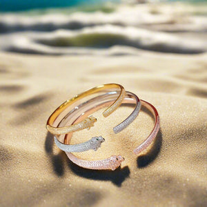 Vermeil gold has a shiny finish and is less prone to fading or tarnishing than regular gold plating. Vermeil gold jewelry can still be worn when bathing, swimming or going to the beach. However, for best protection, you should limit these activities and avoid direct contact with strong cleaning chemicals.