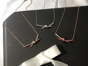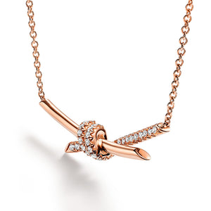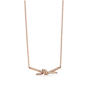 18K T Knot Pendant Diamond Necklace