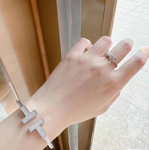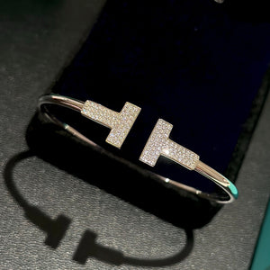 18K T Wide Diamond Wire Bracelet