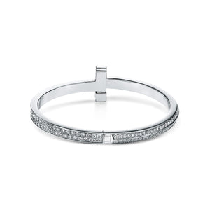 18K T1 Wide Full Diamond Hinged Bangle Bracelet