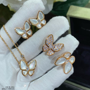 18K Two Butterfly Between the Finger Pearl Ring