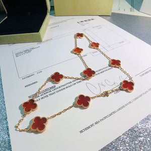 18K Vintage Alhambra Carnelian 10 Motifs Necklace