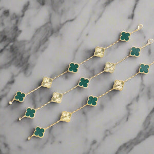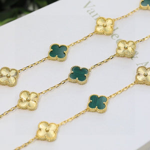 18K Vintage Alhambra Five Motifs Malachite Diamonds Clover Bracelet