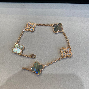 18K Vintage Alhambra Five Motifs Pearl Bracelet