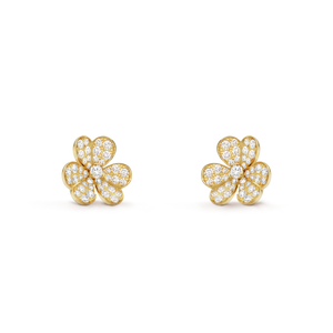 - Clip back with detachable stem in 18K Yellow Gold & Total 0.45 Carat Diamonds